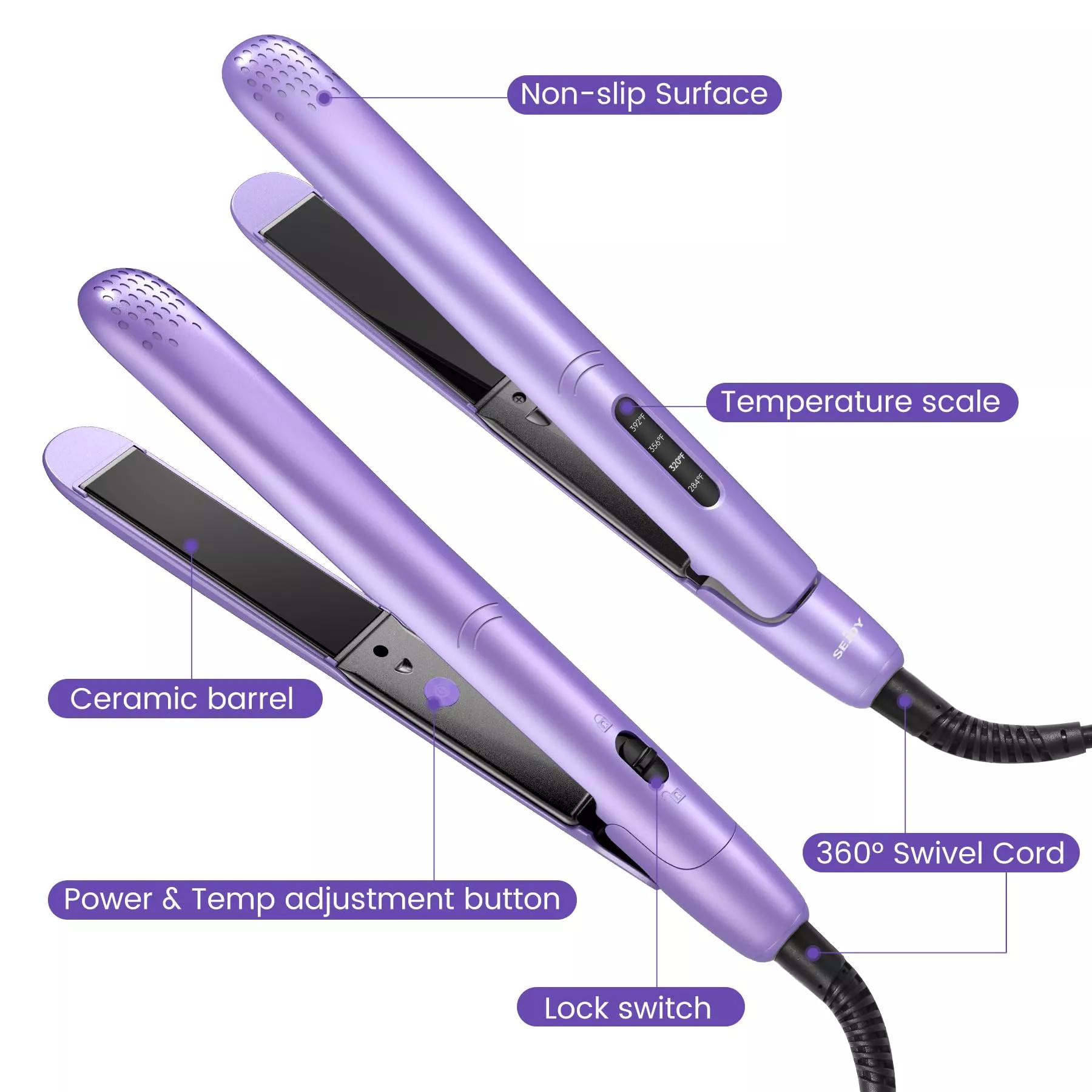 • Digital temperature control for precise styling