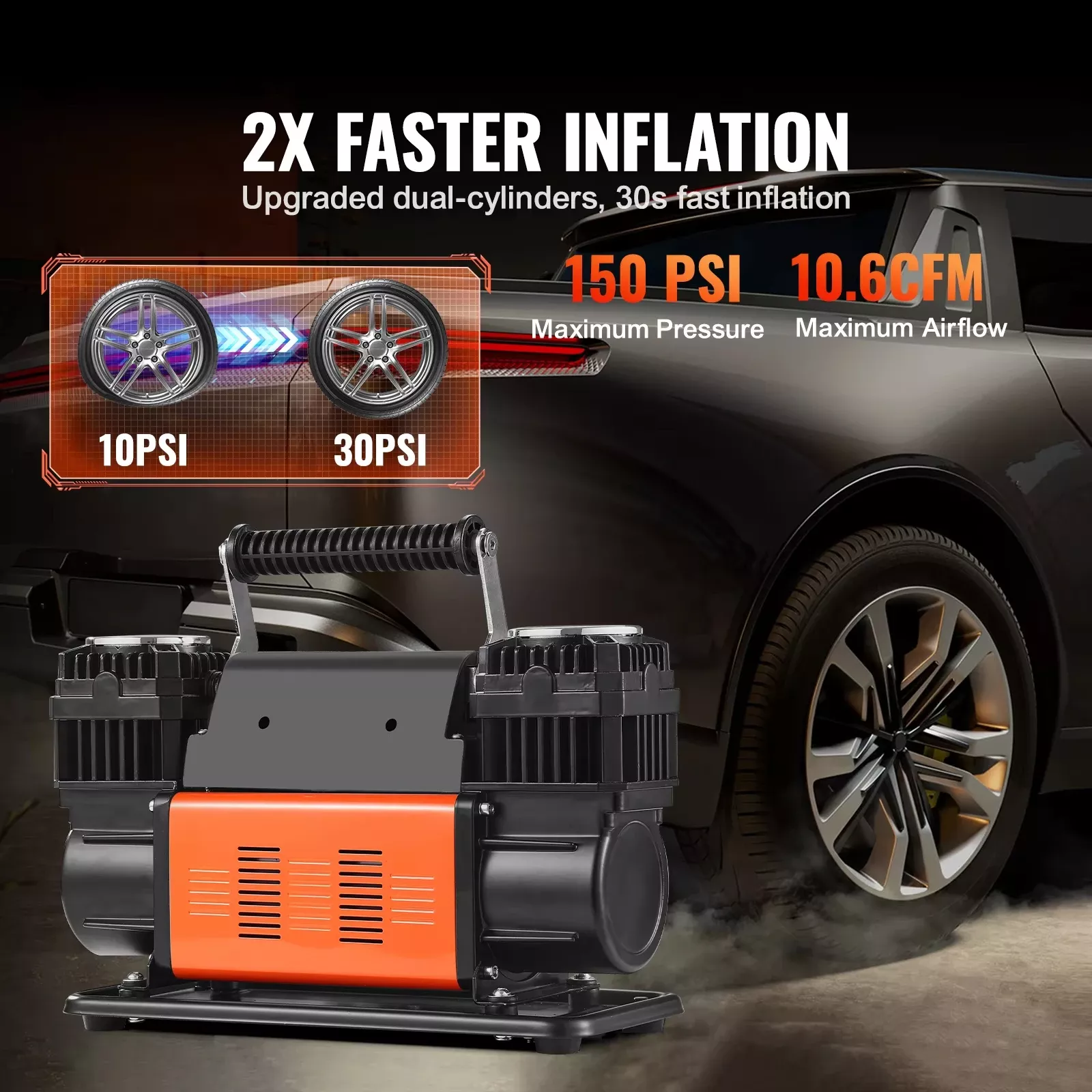 10.6CFM Heavy Duty Dual-Cylinder Air Compressor 12V 150PSI Portable Tire Inflator