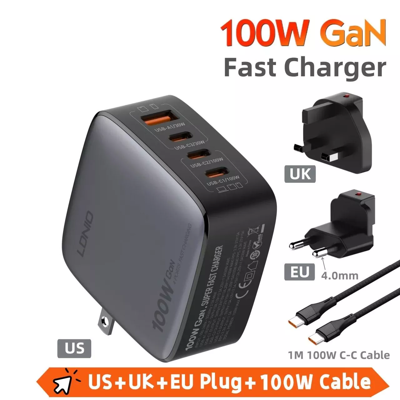 Take your charging game to the next level with this 100W GaN Fast Charging Station. Designed for smartphones, tablets, laptops, and more, it delivers blazing-fast power in a compact, travel-friendly package. Equipped with advanced GaN technology and a Turbo Power Engine, it ensures maximum efficiency, less heat, and lightning-speed charging. Whether at home, at the office, or traveling across the globe, this is your all-in-one power solution.