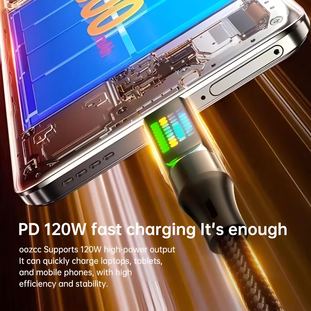Charge your devices faster and smarter with the 120W Type-C Fast Charging Cable. Built for today’s high-performance smartphones, tablets, and laptops, this cable delivers up to 6A of power for ultra-fast charging. Designed with a durable nylon braided exterior, it offers both flexibility and strength for long-lasting use. Plus, the LED display keeps you informed of the real-time charging status, so you’re always in control.
