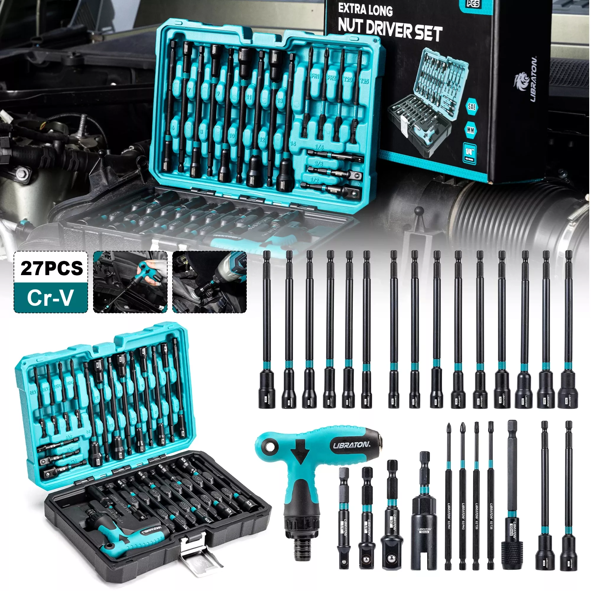 - Complete Kit: Includes 9 metric and 8 SAE long nut drivers, plus essential adapters and bits for maximum versatility.