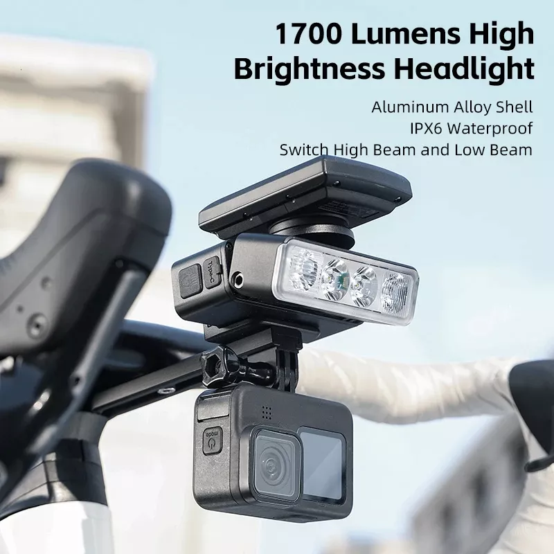 Conquer the darkest trails and streets with this 3-in-1 high brightness bike light that delivers a powerful 1700 lumens of illumination. Designed to give you unmatched visibility, it combines a high-performance headlight, a bike computer stand, and a camera mount in one sleek, handlebar-ready design. Whether you’re riding before sunrise, commuting at night, or exploring rugged paths, this light ensures you see and are seen with crystal clarity.