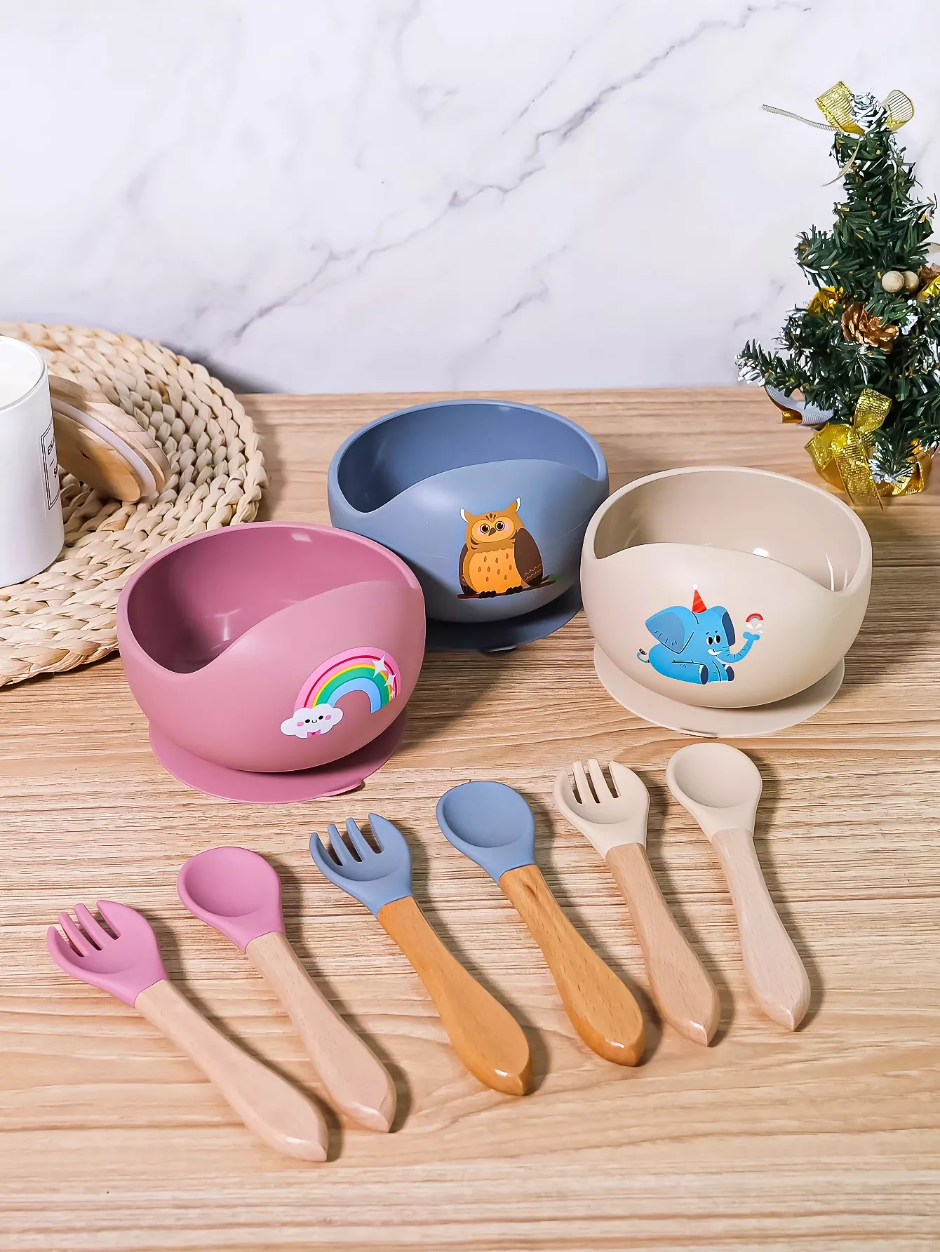 Introducing the perfect tableware set for your little one’s feeding journey – a 3-piece silicone baby feeding bowl set designed to make mealtimes stress-free for parents and exciting for kids. Crafted from high-quality, food-grade silicone, this set is completely free from BPA and harmful chemicals, making it safe for babies and toddlers to use every day. The strong suction base keeps the bowl firmly in place, preventing spills and encouraging independent eating. Complete with a smooth, baby-friendly wood-handled spoon and fork, it’s the perfect combination of functionality and style.