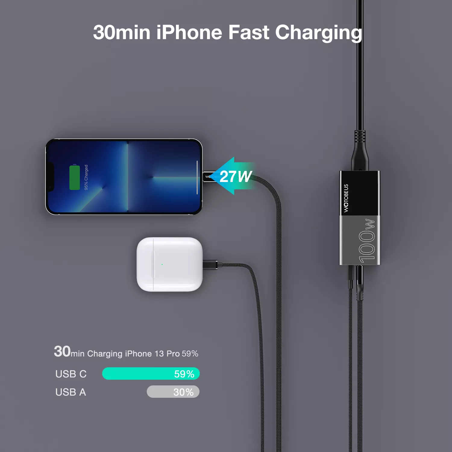 - 100W Total Power: Charge multiple devices simultaneously with three high-speed ports.