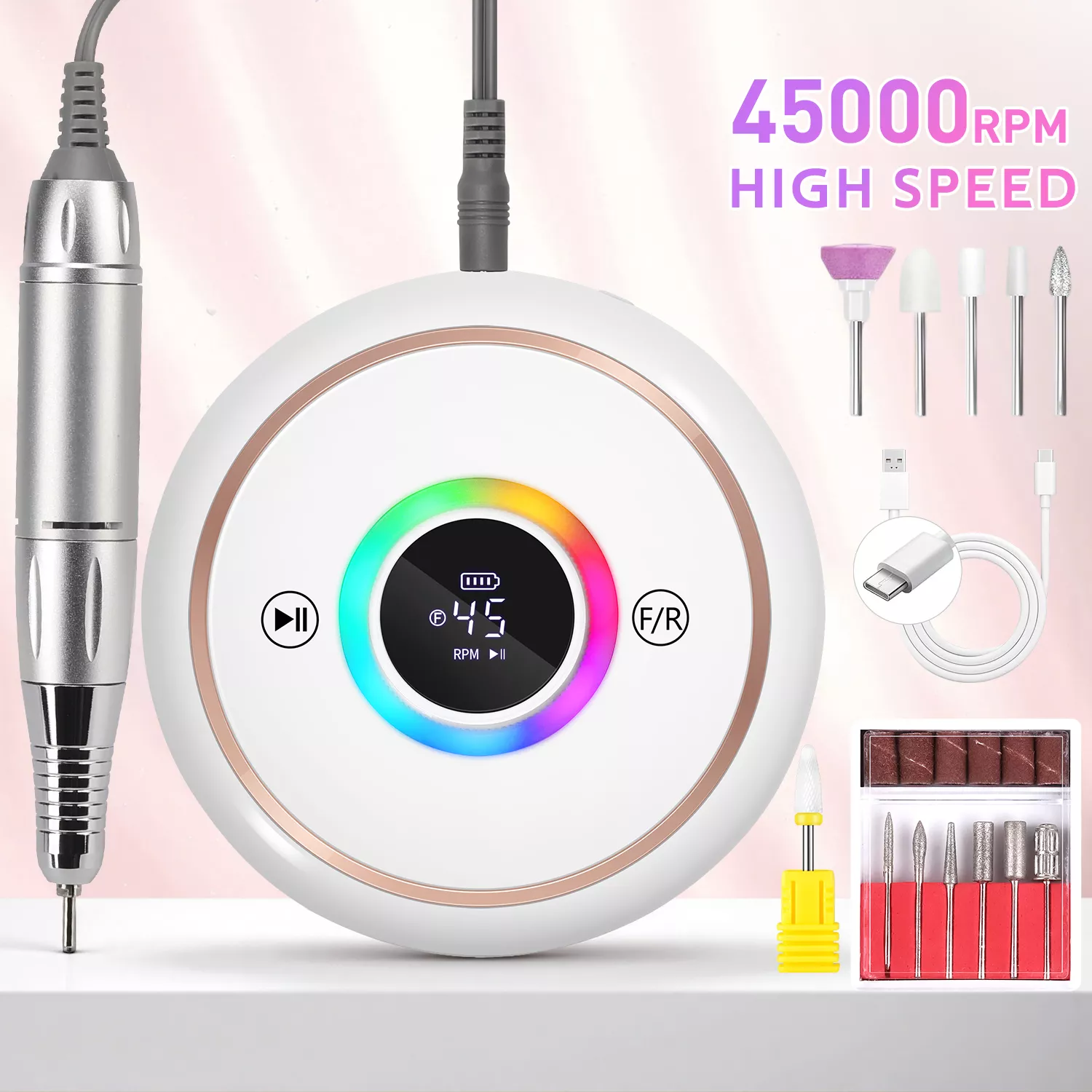 45000RPM Rechargeable Nail Drill Machine with 12 Bits & LCD Display