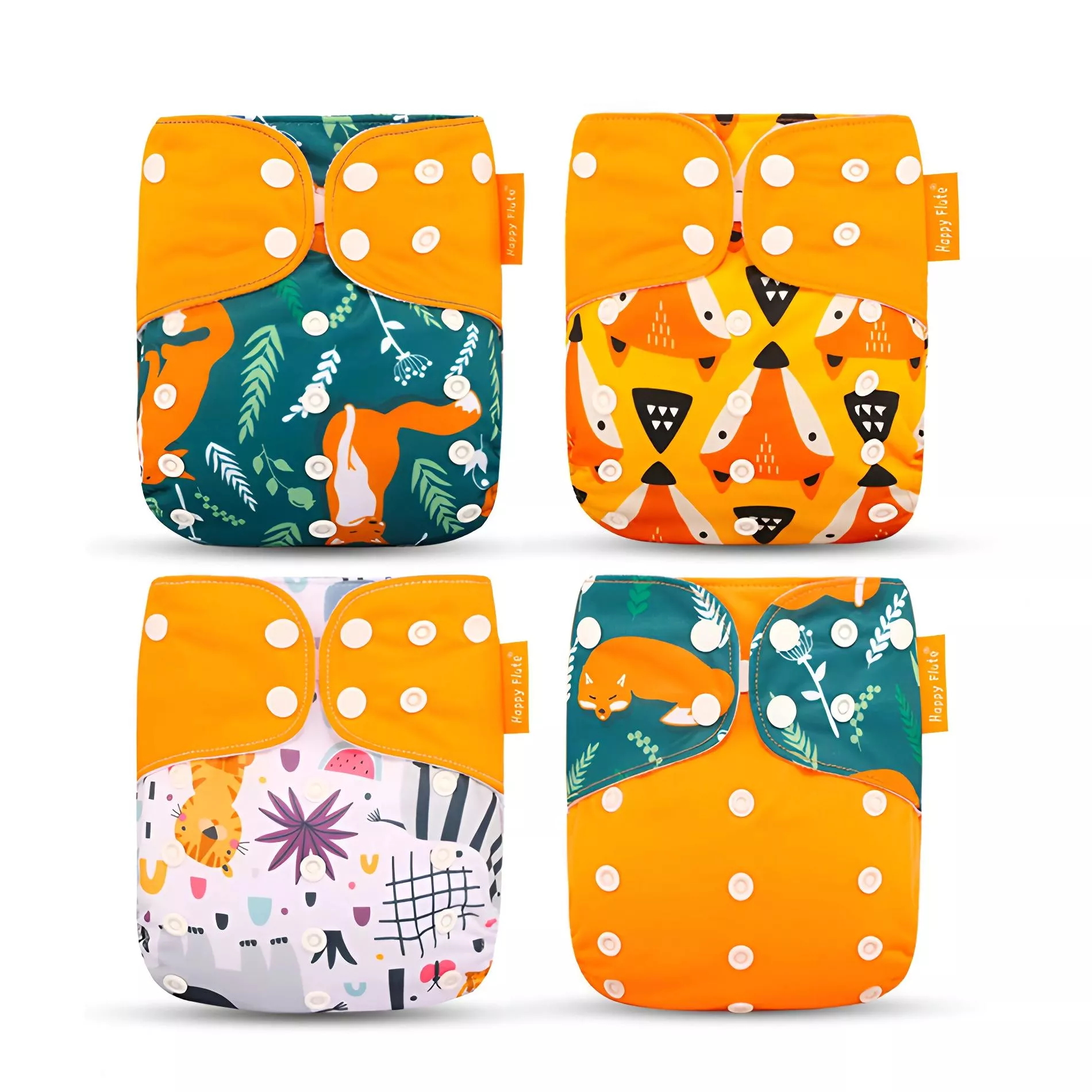 4Pcs Reusable Pocket Diaper Set Washable Adjustable Cloth Nappies for Babies