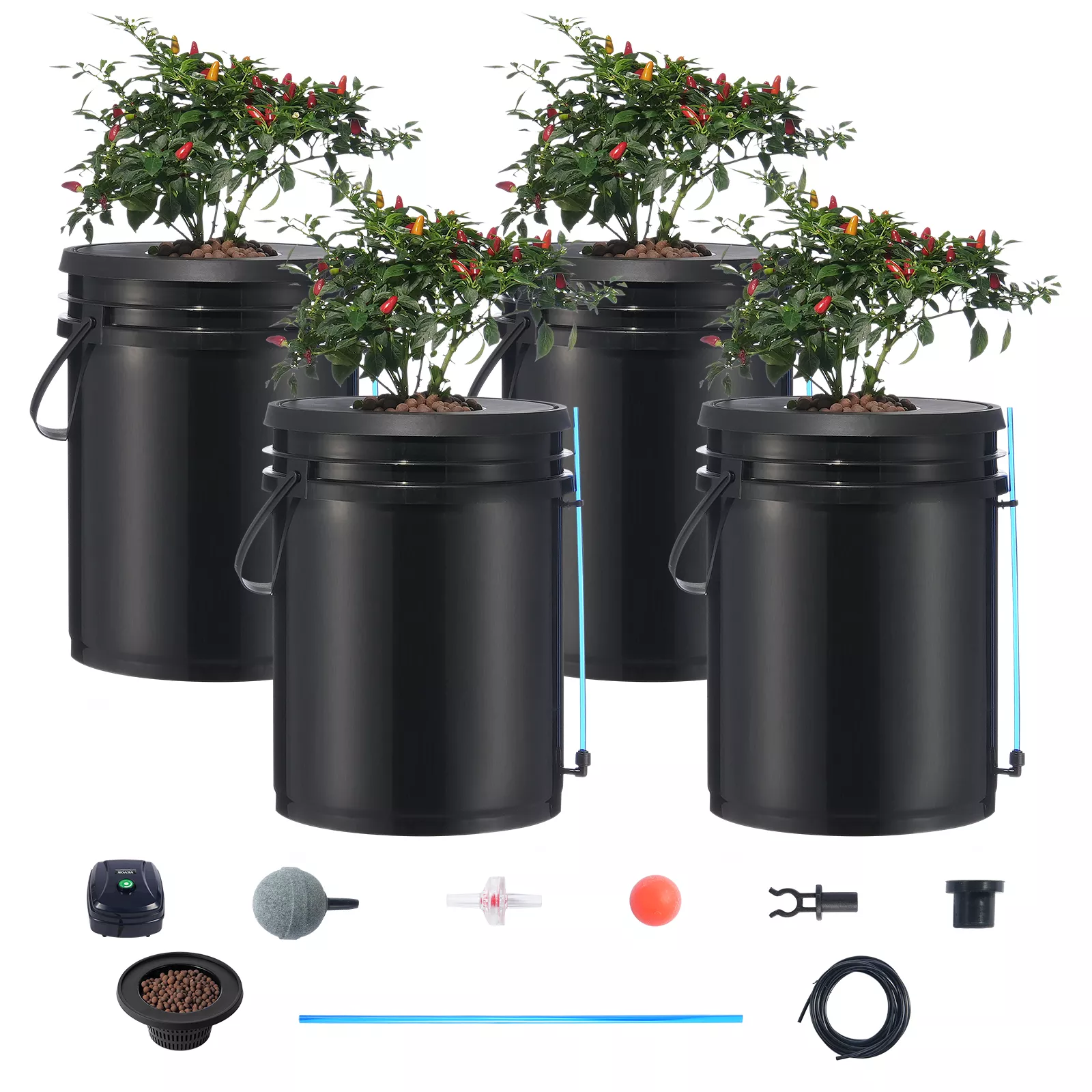 - Complete Kit: Comes with buckets, air pump, air stones, connectors, clay pebbles, and all necessary accessories for easy assembly and use.