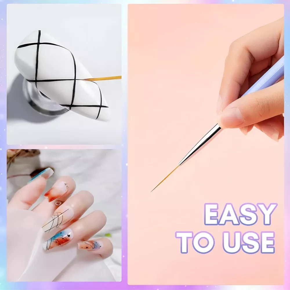 • Fine, Thin, & Precise: The brushes come in five different sizes, allowing you to create everything from long, bold lines to tiny, delicate strokes. Ideal for intricate designs such as French tips, daisy flowers, ombre effects, and more.