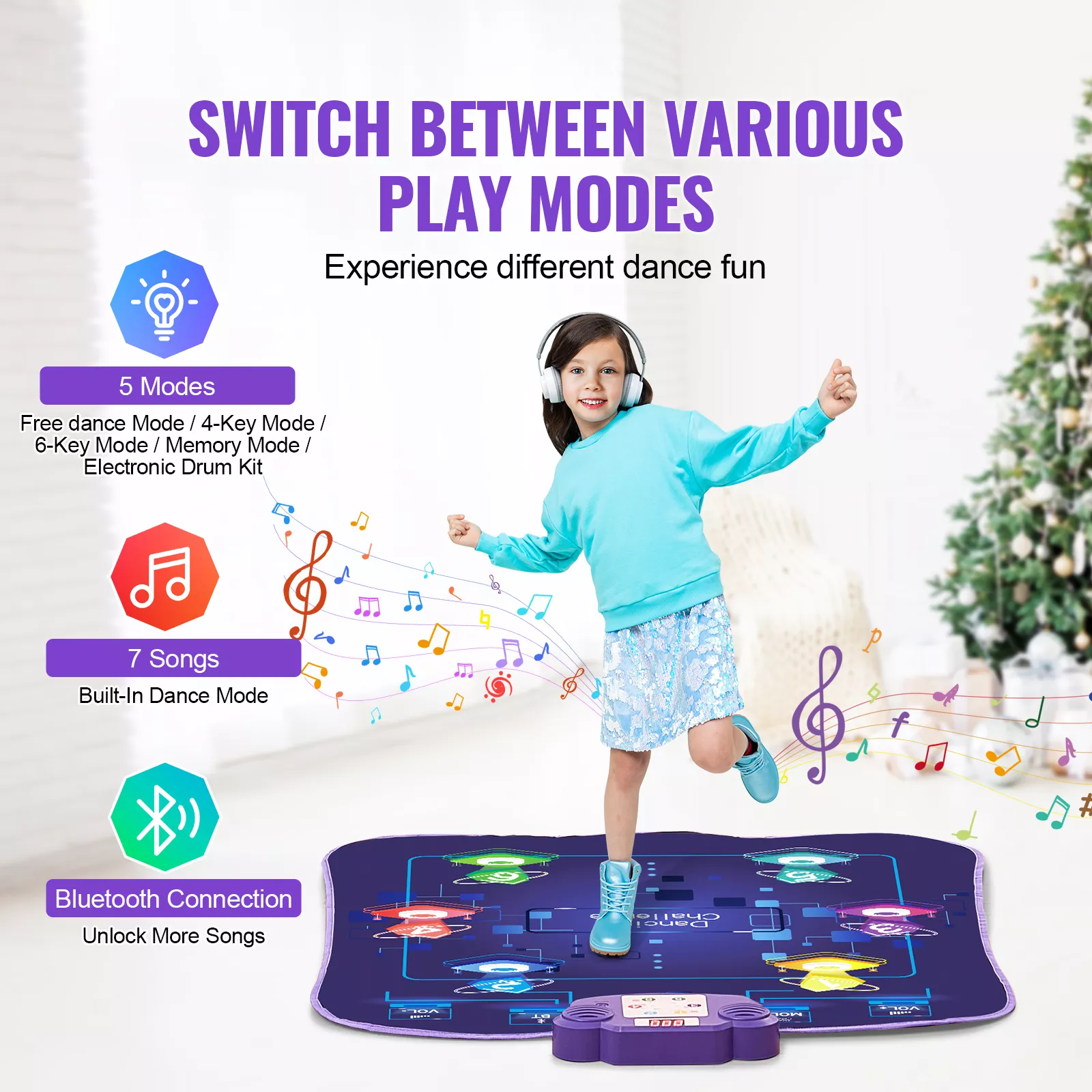 Our dance mat is packed with five dynamic modes: normal mode, 4-key mode with 3 levels, 6-key mode with 3 levels, memory mode, and electronic drum mode. Each mode is carefully crafted to suit different skill levels, so both younger and older kids can enjoy it. LED arrows light up with every step, guiding children through the beats while keeping them engaged and entertained.