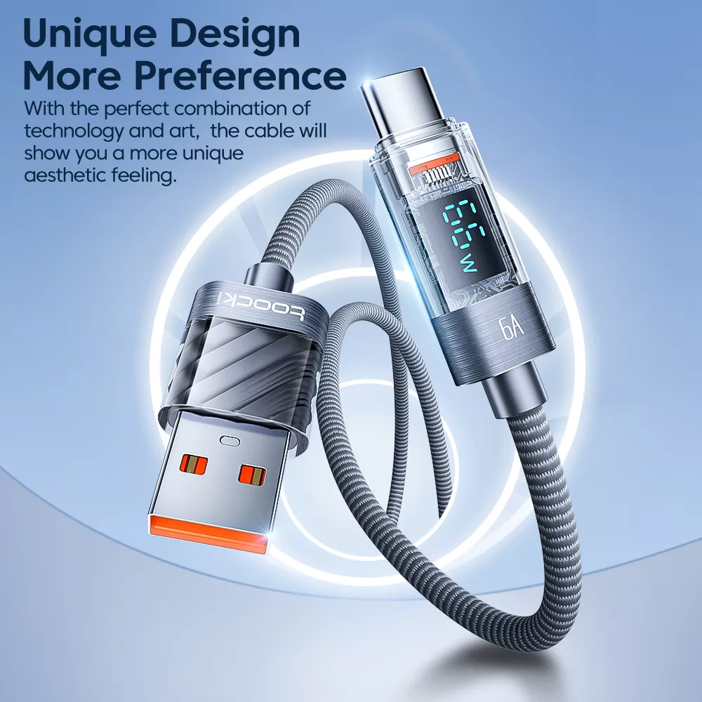 Upgrade your charging game with our 6A USB to Type C Fast Charging Cable. Designed for the modern user, this high-performance cable is perfect for quickly charging devices like the Huawei Mate50, Samsung Galaxy S23, and Xiaomi smartphones. With its transparent digital display, you can easily monitor charging status, making this cable not just functional but also user-friendly.