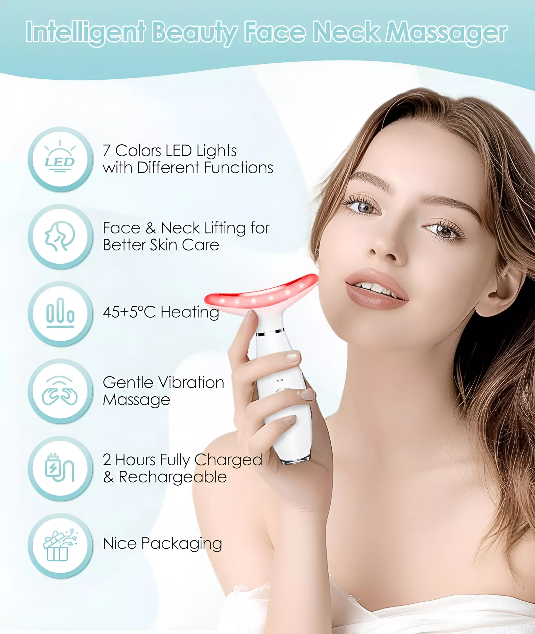 Turn back the clock on your skin with this advanced 7-Color LED EMS Microcurrent Neck & Face Lifting Massager. Designed to target fine lines, wrinkles, sagging skin, and double chins, this multifunctional device combines LED light therapy, high-frequency microcurrent, gentle vibration, and soothing heat to help you achieve firmer, smoother, and more radiant skin from the comfort of your home.