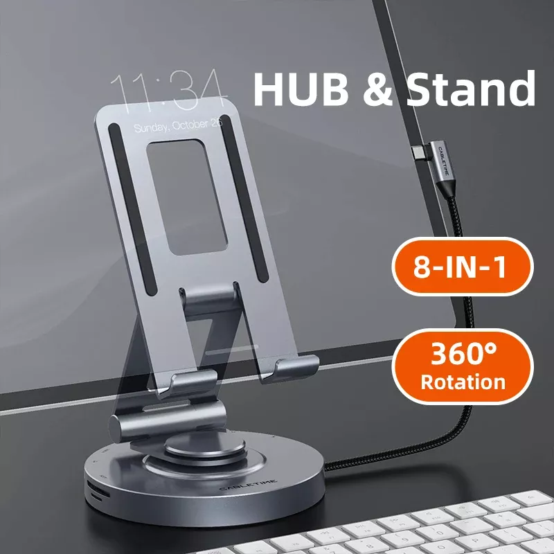 Unlock the full potential of your iPad Pro, iPad Air, or tablet with this versatile 8-in-1 USB-C Hub Dock. Featuring a sleek aluminum design and a smooth 360° rotating stand, it not only expands your device’s connectivity but also elevates your viewing and working experience. Whether you’re streaming in crystal-clear 4K, transferring files at lightning speed, or charging your device, this hub is built to keep up with your lifestyle.