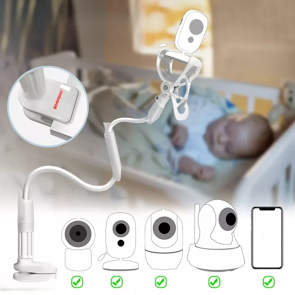 Monitor your little one effortlessly with this multifunctional universal phone and baby camera holder. Designed with convenience in mind, it fits most baby cameras with a base less than 3.8 inches wide and 1.5 inches tall. Whether you want a close-up of your baby sleeping or a wider view of the room, this mount ensures you never miss a moment.