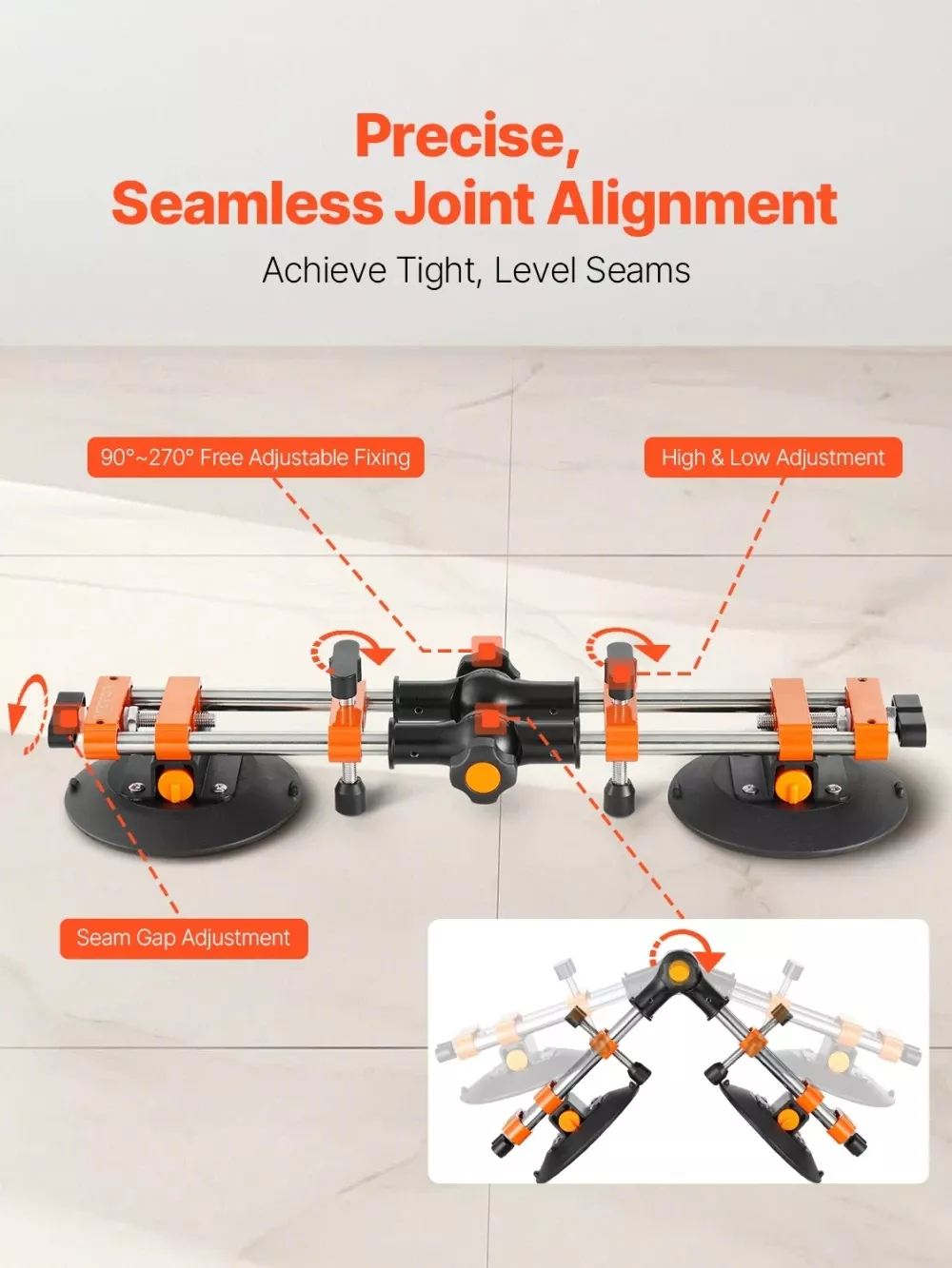 Adjustable Tile Seam Setter with 6-Inch Suction Cups for Perfect Alignment