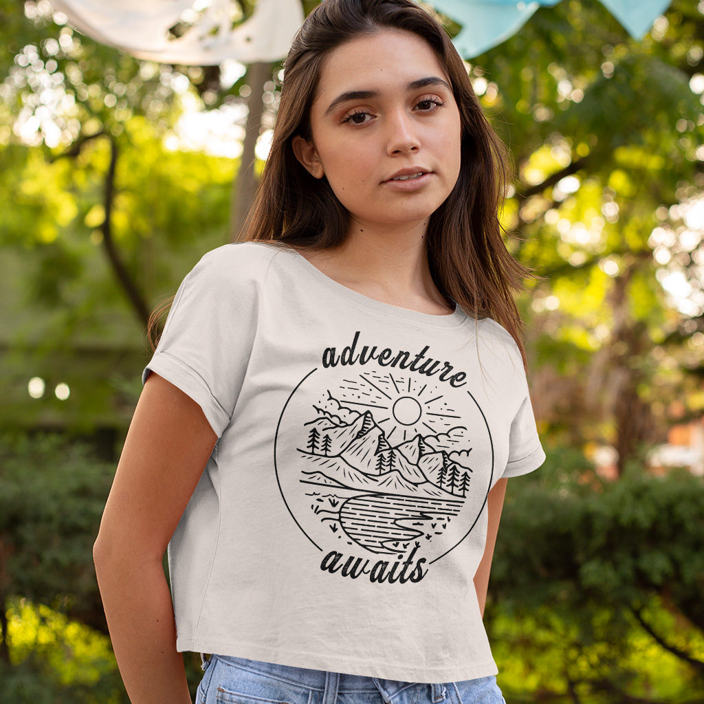 Adventure Awaits Cropped T-Shirt - Nature Lover Trendy Tee - Camping Gift Women's Basic T-Shirt
