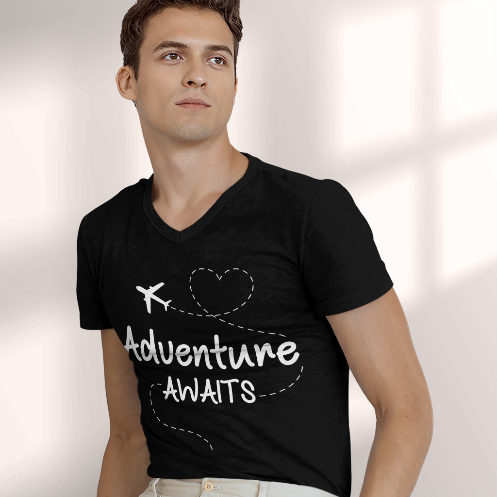 Adventure Awaits Plane V-Neck T-Shirt – Travelers Gift Basic T-Shirt – Airplane Tee