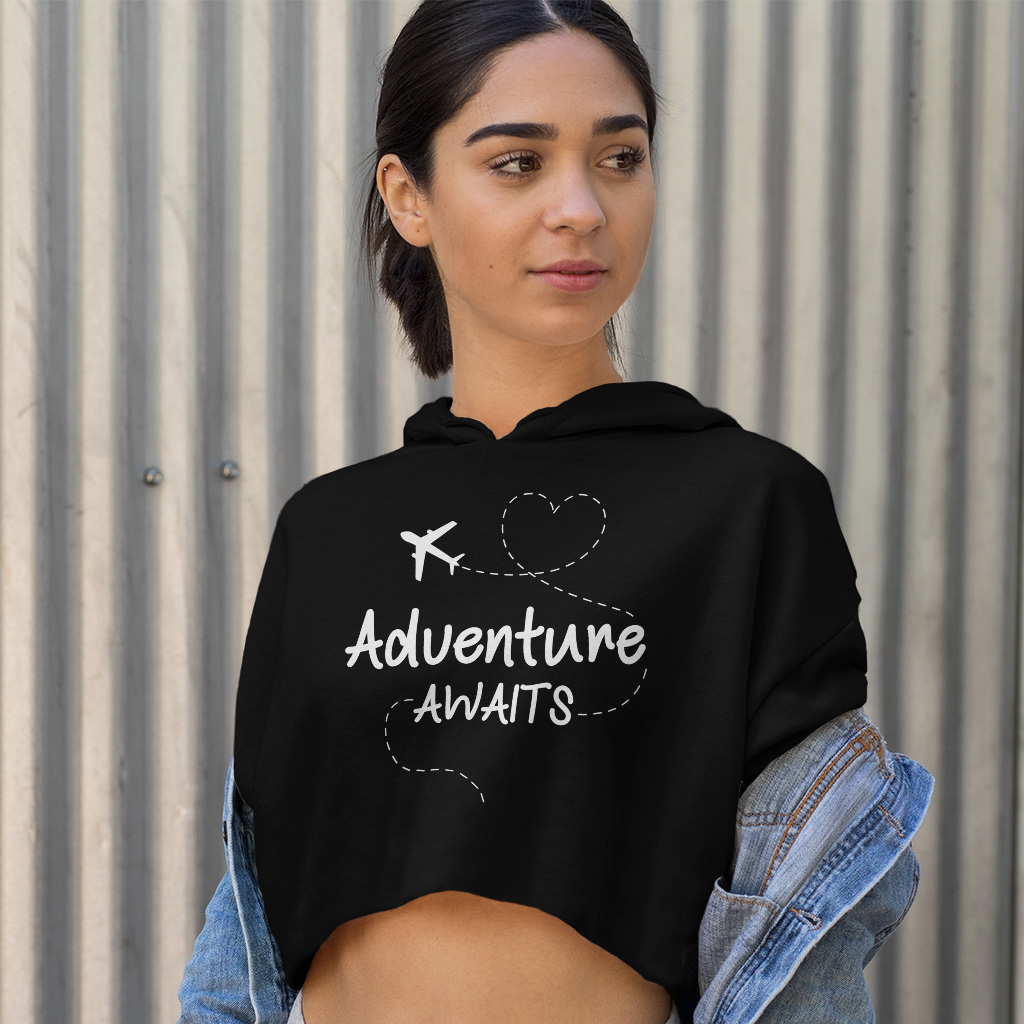 Adventure Awaits Plane Women’s Cropped Hoodie – Airplane Hooded Sweatshirt – Travelers Gift Super Crop Top Hoodies