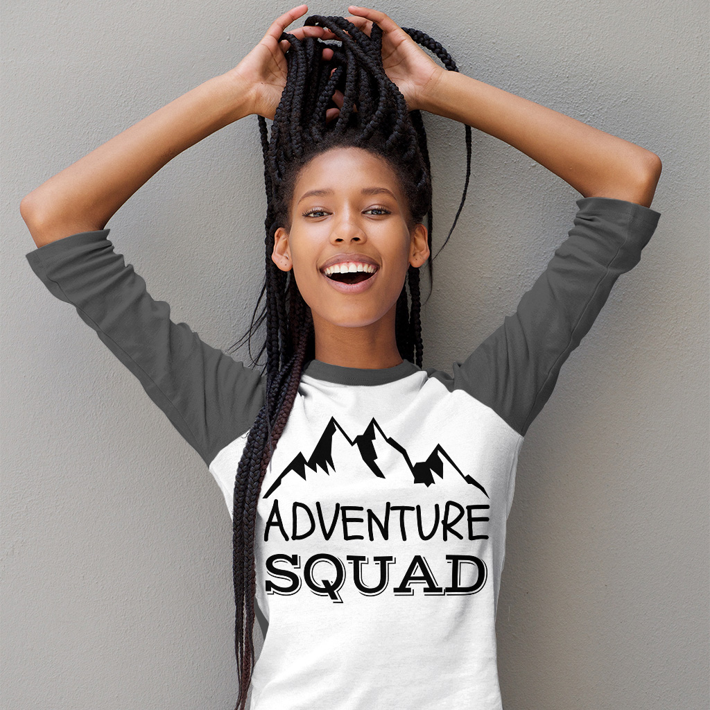 Adventure Squad Baseball T-Shirt – Explore Mountains 3/4 Sleeve – Adventure Buddies Raglan Jersey Shirt