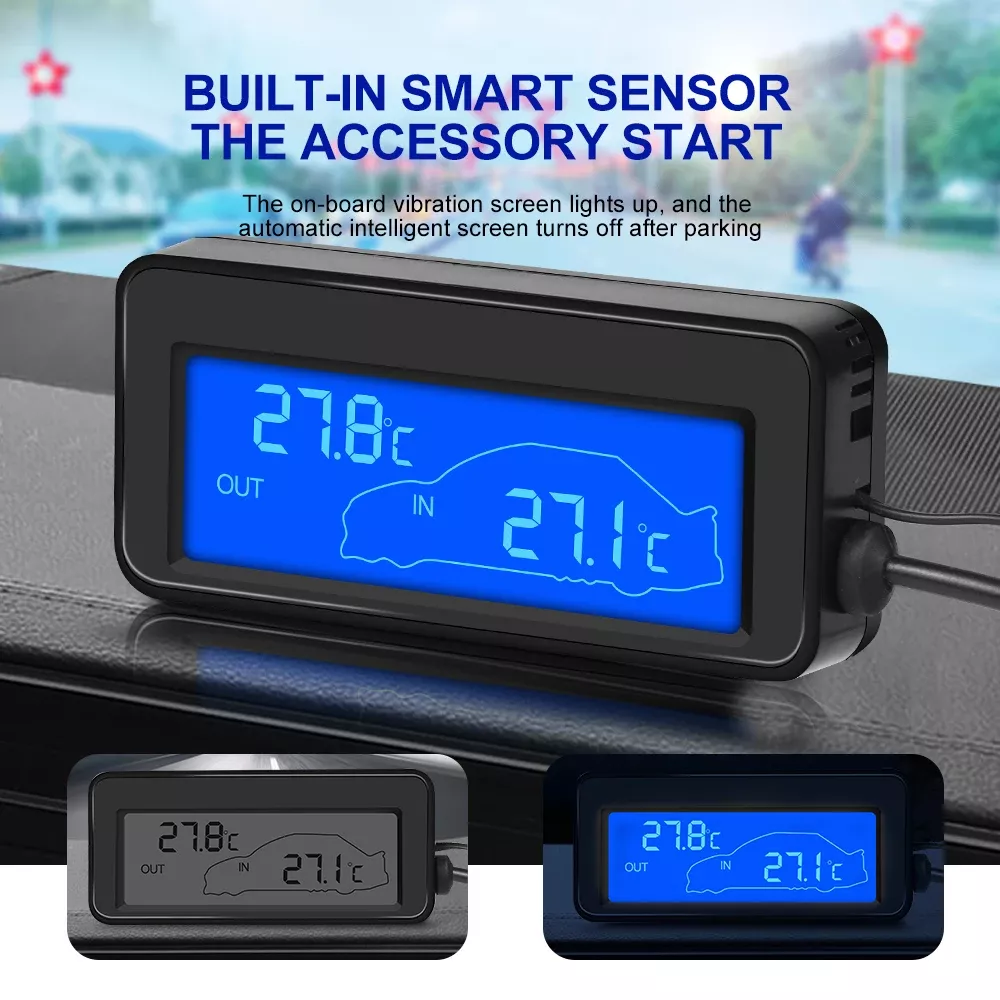 • Dual Temperature Monitoring: Displays both internal and external temperatures in Celsius, allowing you to monitor the environment inside and outside your car.