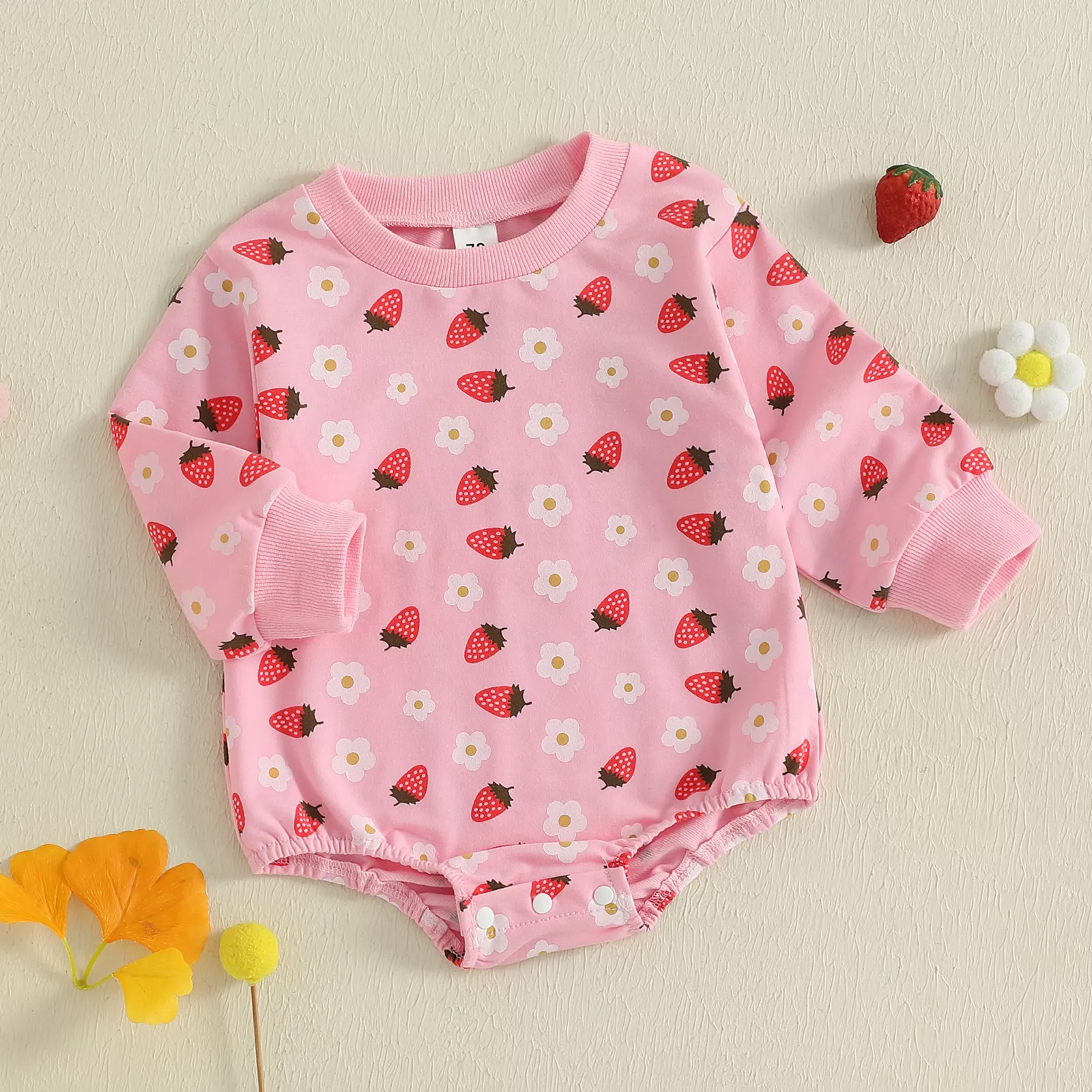 Dress your little one in charm and comfort with this baby girl romper, designed with a sweet strawberry and flower print that makes every day brighter. With its long sleeves and soft crew neck, this romper is perfect for keeping your baby cozy while still looking stylish. Whether it’s for lounging at home, visiting family, or casual outings, this outfit ensures your baby girl feels comfortable and looks absolutely adorable.