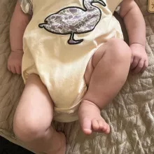 This romper is just too cute! The duck embroidery adds a fun twist to the camo print. Not only does it look adorable, but it's also super comfy for my little one. She can move around easily in it, thanks to the stretchy material. Perfect for summer!