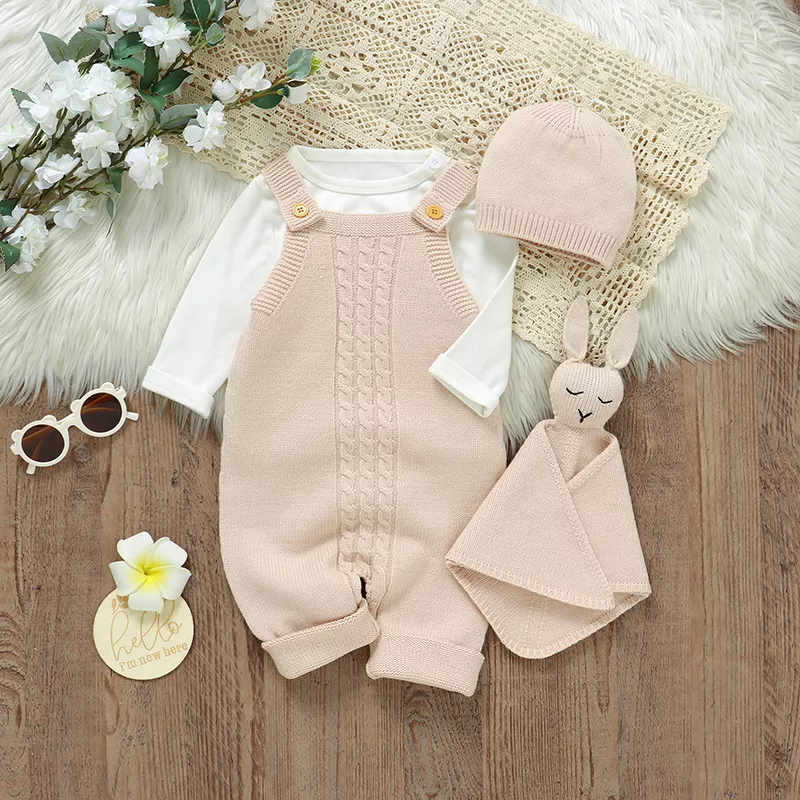 Keep your little one cozy and cute with this charming 3-piece baby romper and hat set. Designed for newborns up to 18 months, this lightweight knit jumpsuit features a breathable blend of viscose, polyester, and nylon, making it perfect for year-round wear. The sleeveless design ensures your baby stays comfortable during warmer days, while the soft knit fabric gently hugs their delicate skin without any irritation.