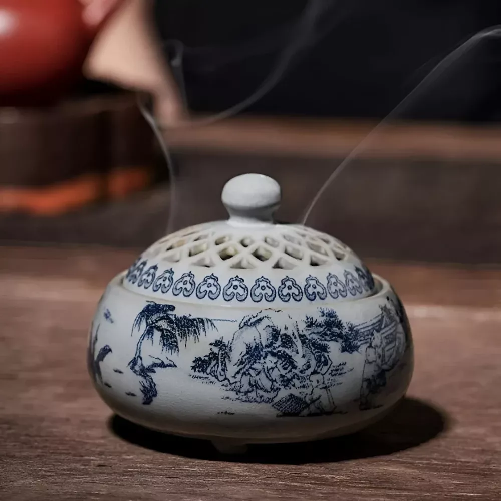This incense burner is best used during moments when you want to deepen relaxation, such as during meditation sessions, calming yoga practices, or quiet evenings at home. What sets this burner apart is its unique blue and white mountain scenery pattern, which not only serves as a functional aromatherapy tool but also a piece of art that invites a sense of nature and calm indoors. Its durable ceramic build and compact size make it practical without sacrificing style.