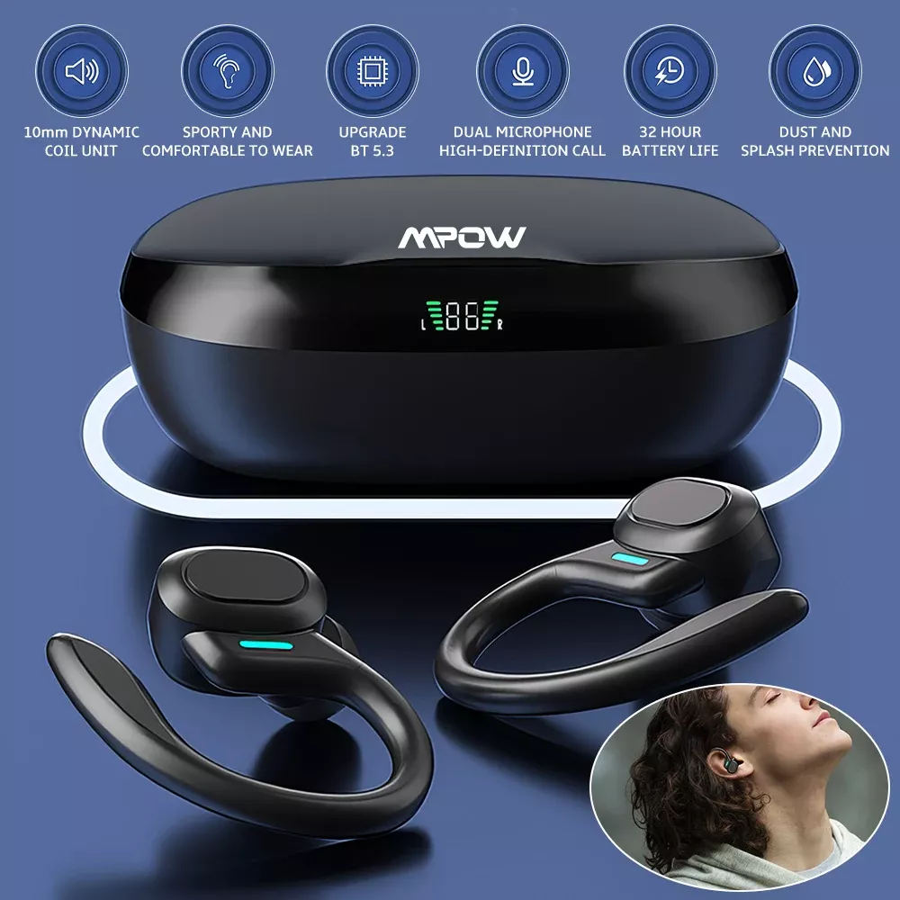 These headphones are best used when you need reliable all-day audio—whether at work, during workouts, on long commutes, or while gaming. With dual-mic noise cancelling, your calls stay crisp, and with up to 160 hours of use with the case, you’ll never run out of power on the go. The low-latency performance makes gaming and streaming more immersive, while the ergonomic earhooks guarantee a secure fit no matter how active your lifestyle.