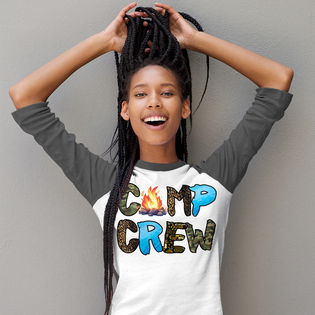 Camp Crew Baseball T-Shirt - Camp Life 3/4 Sleeve - Outdoor Raglan Jersey Shirt