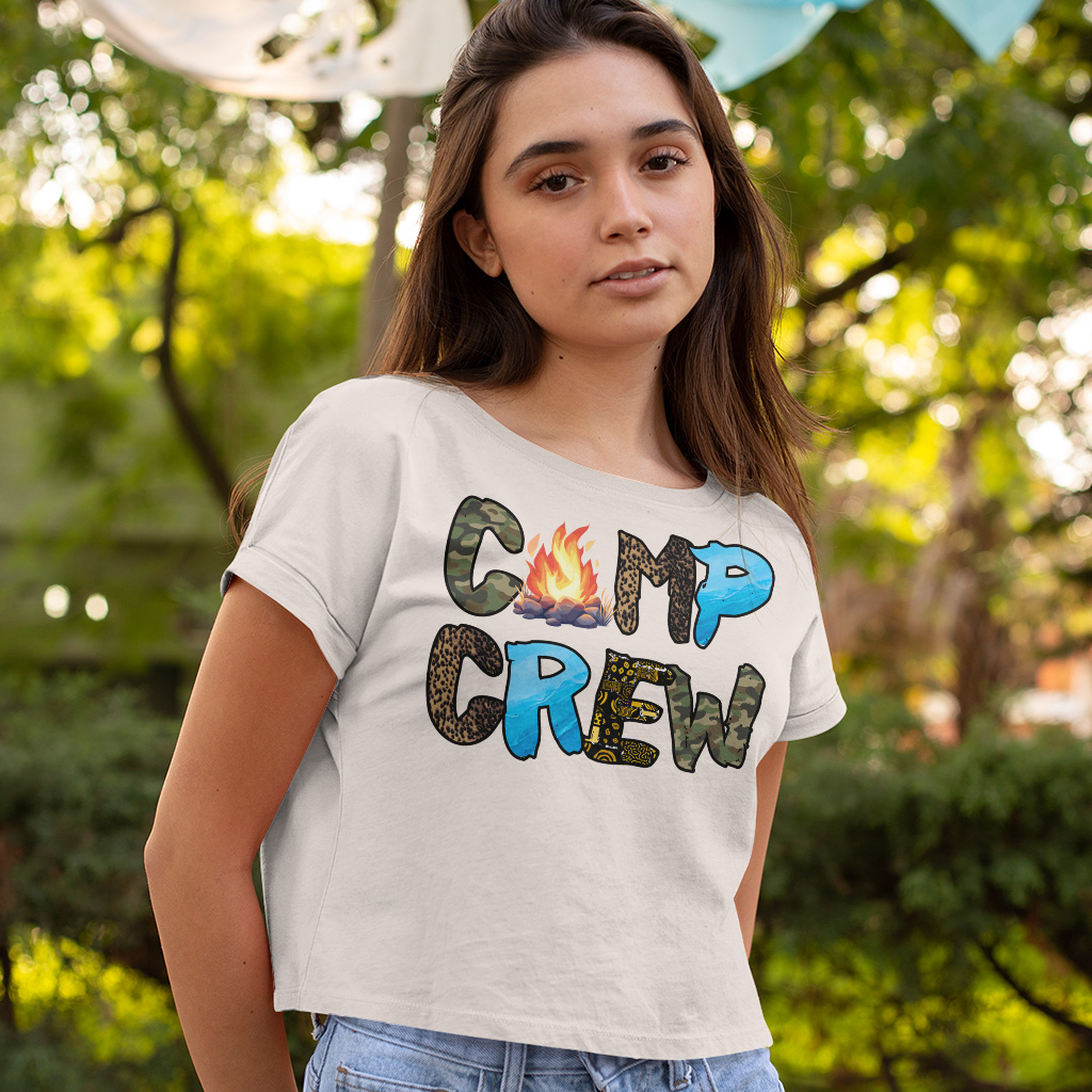 Camp Crew Cropped T-Shirt - Camp Life Trendy Tee - Outdoor Women's Basic T-Shirt