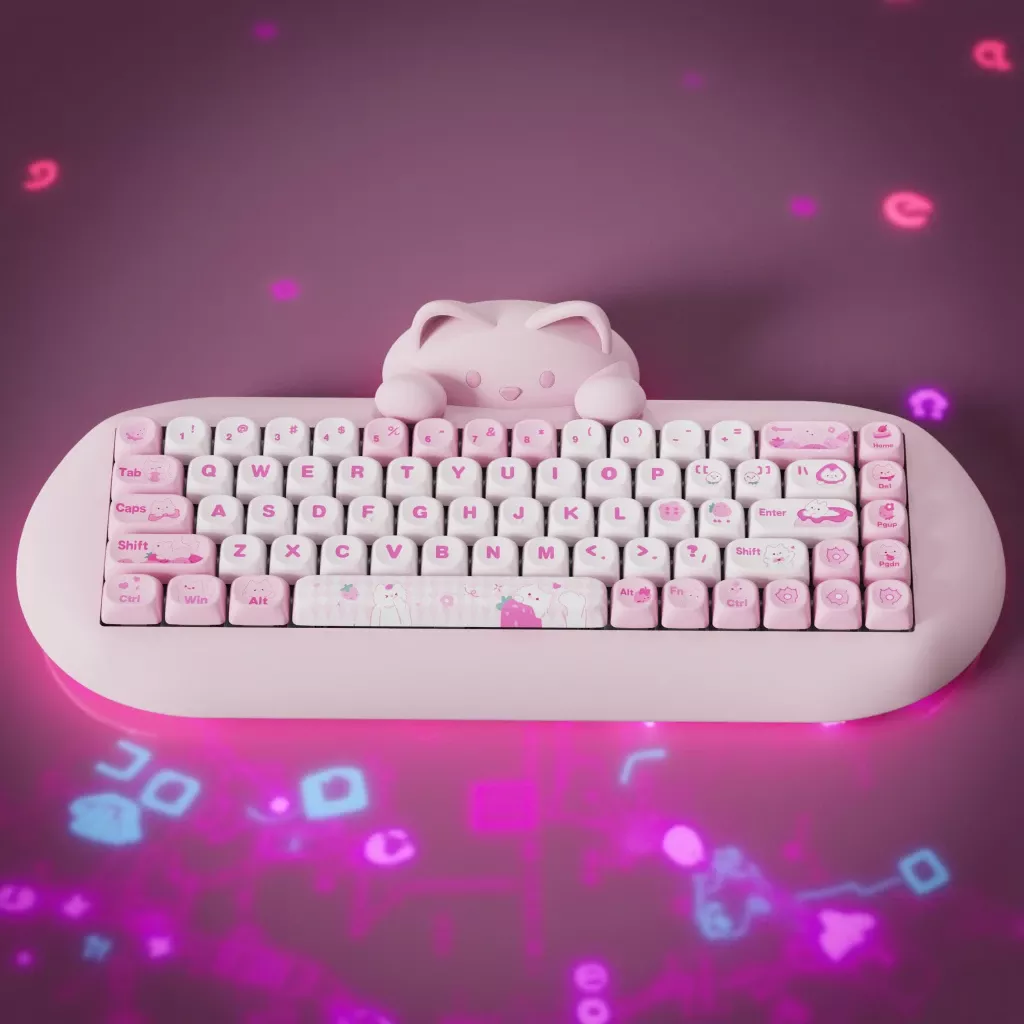 Brighten up your workspace and elevate your typing experience with this irresistibly cute 65% mechanical keyboard, designed for fun, function, and flair. With a charming cat-inspired silicone case, vivid RGB lighting, and ultra-satisfying switches, this compact keyboard is a perfect blend of performance and personality. Whether you’re gaming, working, or just want to enjoy a joyful typing experience, this keyboard delivers style and substance in one compact package.