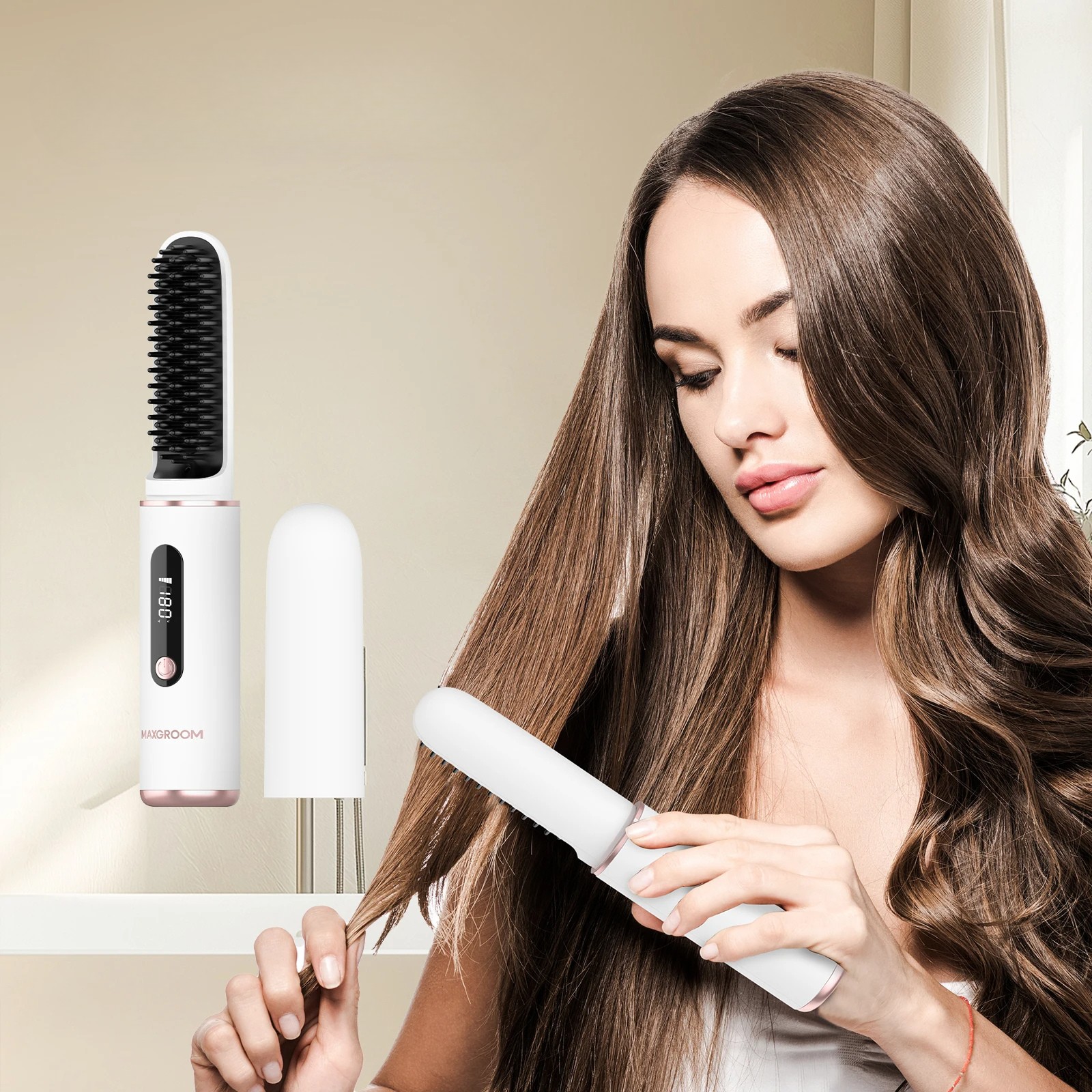 Say goodbye to tangled cords and hello to effortless styling with this cordless ionic hair straightener brush. Designed for convenience and portability, it weighs only 8.8 oz and comes with a sleek lipstick-style cap, making it the perfect travel companion. Whether you’re getting ready for work, freshening up before a meeting, or touching up your look during a trip, this hot comb keeps you looking your best without the hassle of finding an outlet.