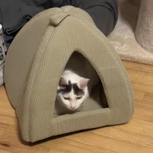 This cat bed is just what we needed for our chilly apartment - keeps Mr. Whiskers cozy without overheating him. The soft corduroy material? He can't get enough of it!