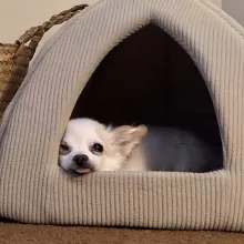 Lightweight and easy to move around – our little terrier loves his new sleeping spot!