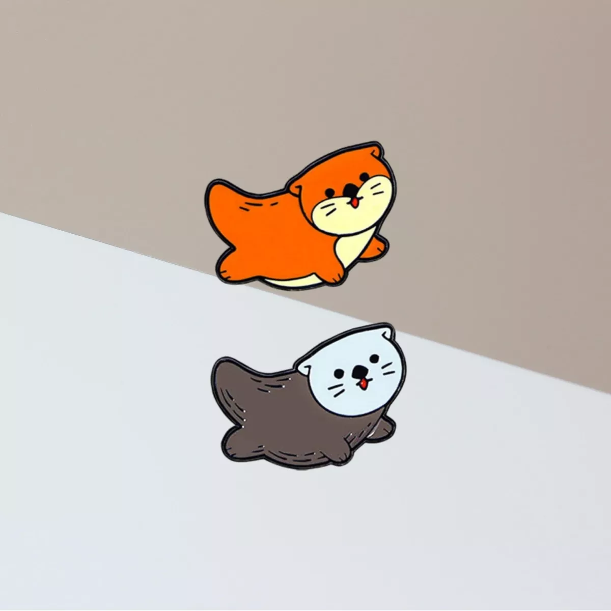 Cute Cat & Otter Enamel Animal Brooch Pin – Trendy Lapel, Hat & Bag Accessory