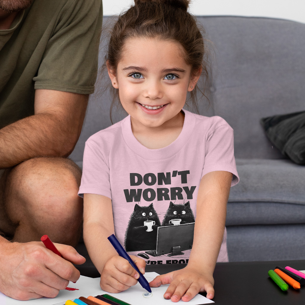 Don’t Worry We’re From Tech Support Toddler Cotton T-Shirt – Funny Gift Short Sleeve Tee – Cool Cat T-Shirt for Kids