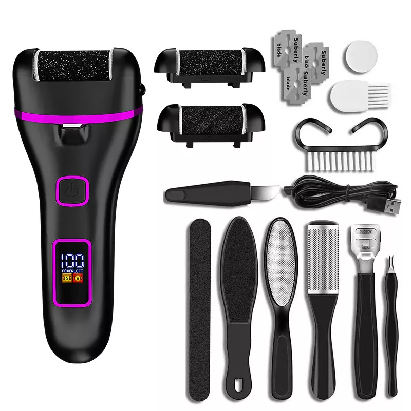 - 18-in-1 foot care kit: Includes roller heads, charger, cleaning brush, and other essential accessories.