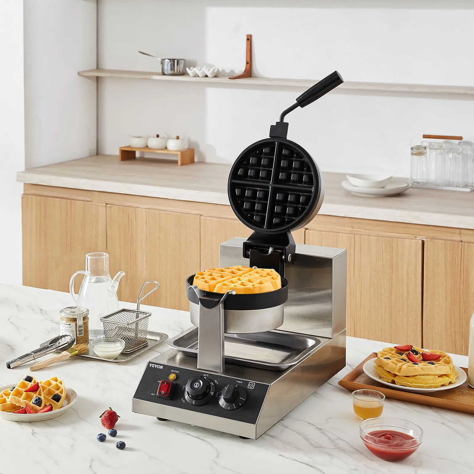 Start your mornings with mouthwatering waffles made effortlessly by this high-power commercial round waffle maker. Designed to create 1-inch thick waffles that are crispy on the outside and fluffy on the inside, this waffle iron transforms breakfast into a delightful experience. With a powerful 1300-watt heating system, you get evenly baked waffles in just 3 to 5 minutes—perfect for busy households, brunch gatherings, or small cafes.