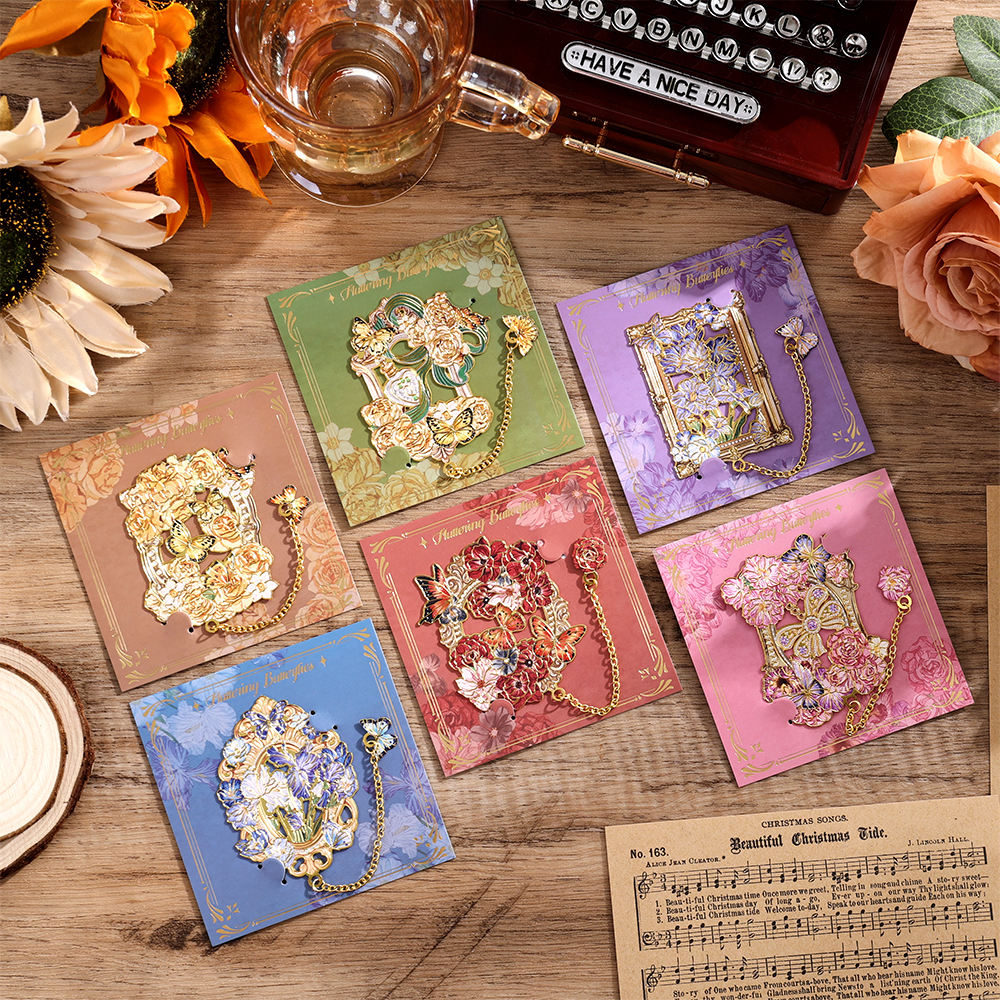 Its vintage metal design and finely detailed floral accents make it not only a practical tool but also a decorative item that brings a sense of refinement to your reading materials. The metal ornamental chain enhances its classic appeal while offering a practical way to keep your place in books, journals, planners, and more. Perfect for those who appreciate beauty in the small details, this bookmark is a great way to mark your progress in style.