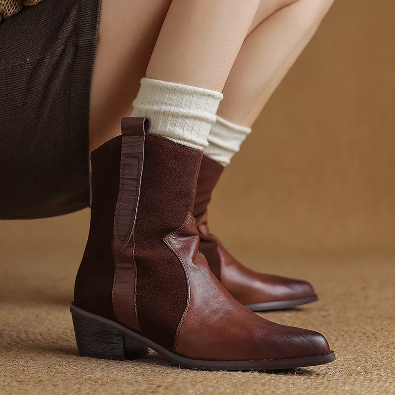 What sets these ankle boots apart is their combination of timeless design and practical comfort. Unlike ordinary boots, the short plush insole keeps your feet cushioned all day, while the genuine leather upper gives you a polished, professional look. The square chunky heel balances elegance with stability, making them ideal for walking around the office or strolling in the city. These boots seamlessly blend retro charm with modern sophistication, ensuring you stand out effortlessly wherever you go.