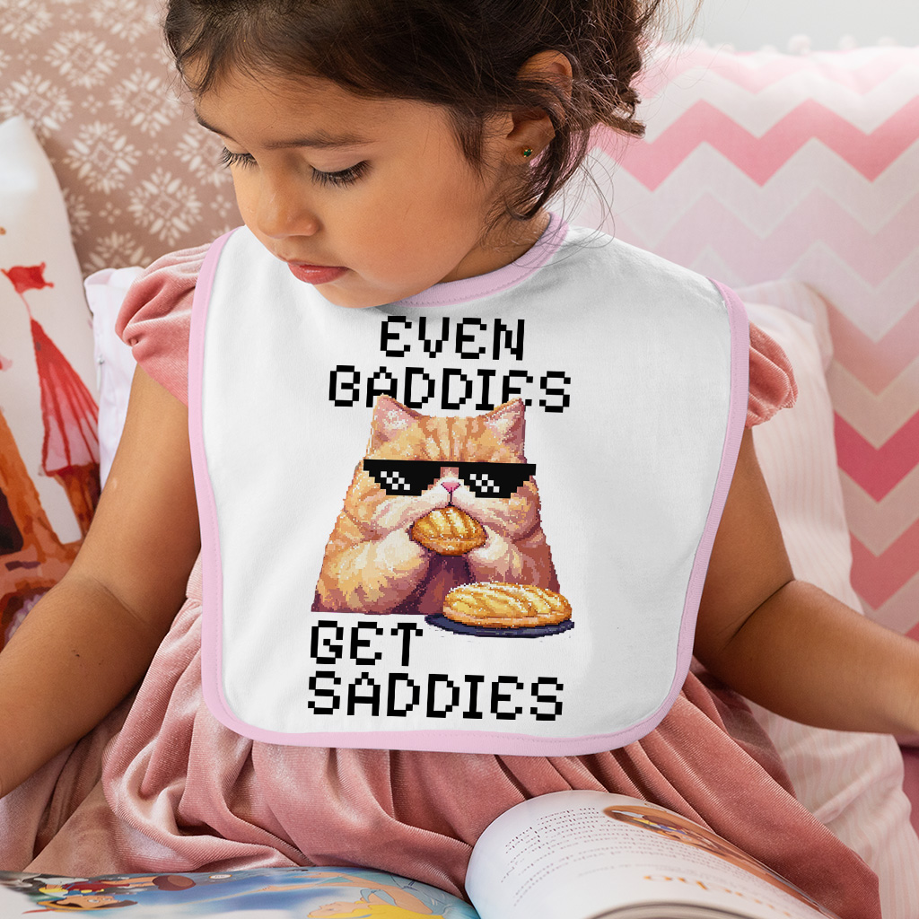 Even Baddies Get Saddies Baby Bibs – Cat Meme Baby Feeding Bibs – Cat Lover Unisex Bibs for Eating