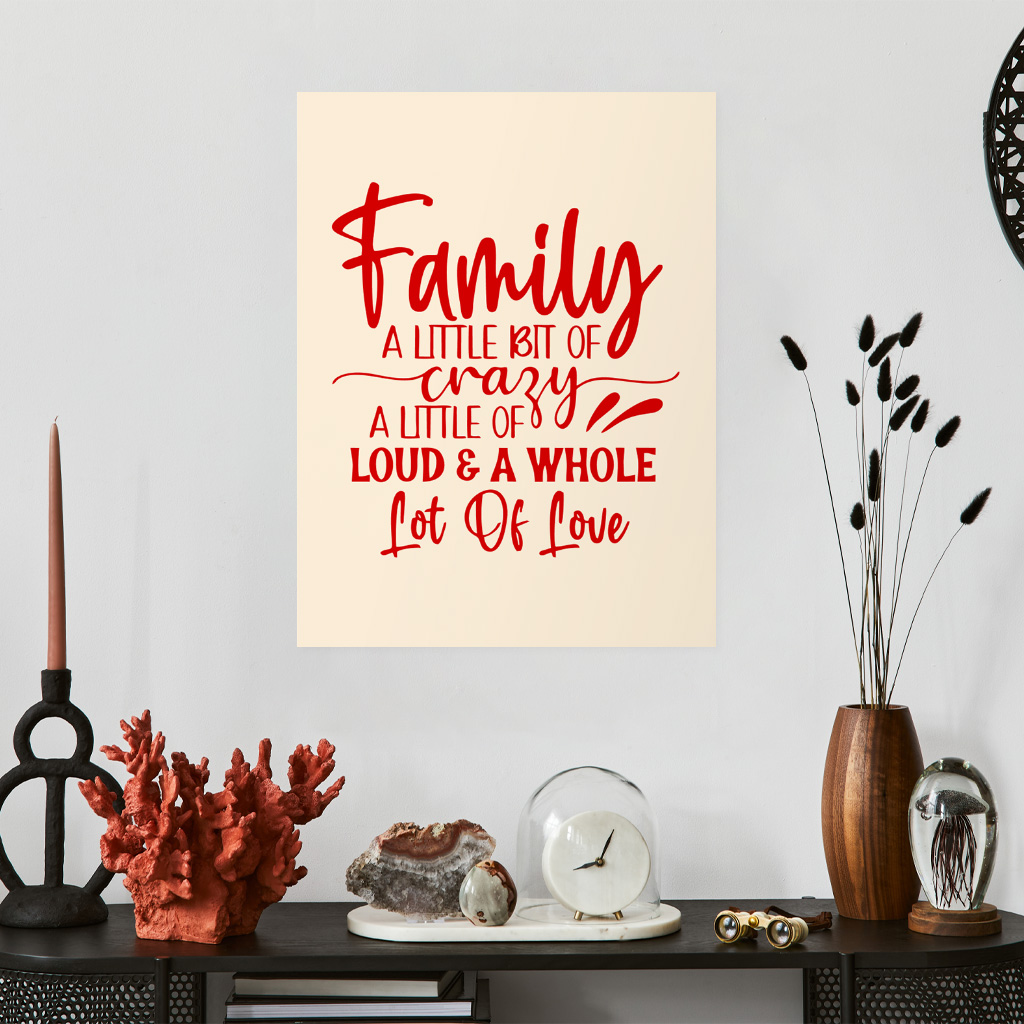 Family A Little Bit Of Crazy Matte Poster - Crazy Funny Family Wall Art Print - Loud & Whole Lot Of Love Home Decor