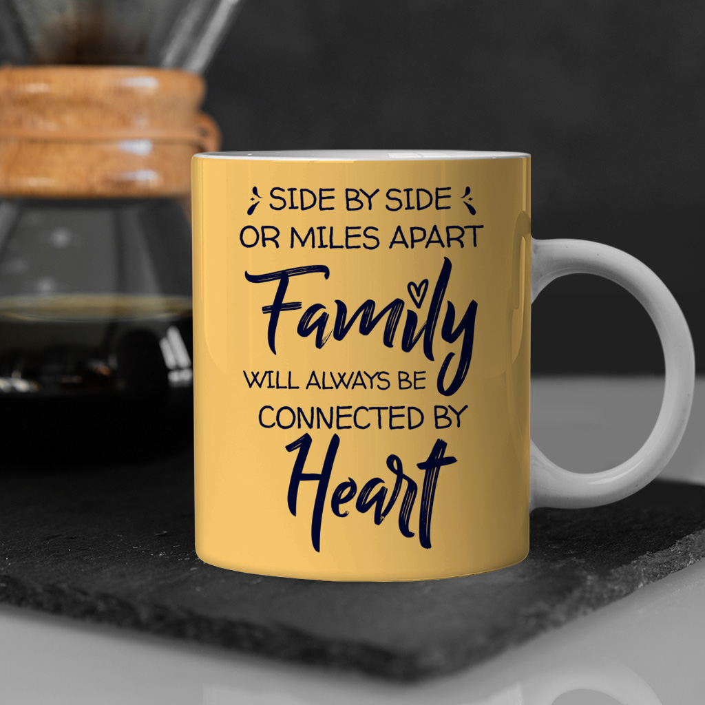 Family Will Always Be Connected by Heart 11oz Mug – Family Inspirational Ceramic Mug – Funny Family Coffee and Tea Cup