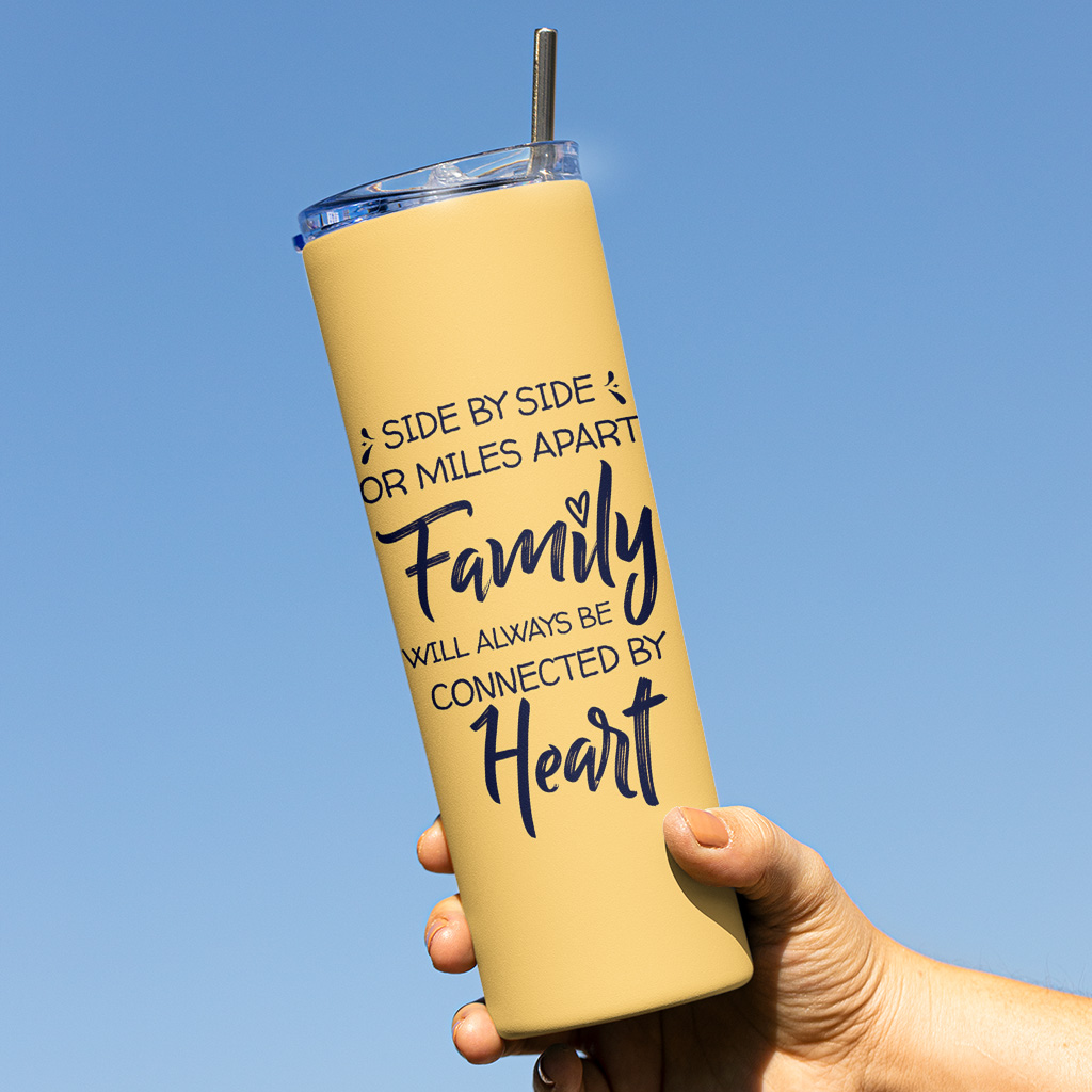 Family Will Always Be Connected by Heart 20oz Skinny Tumbler – Family Inspirational Travel Mug – Funny Family Stainless Steel Tumbler