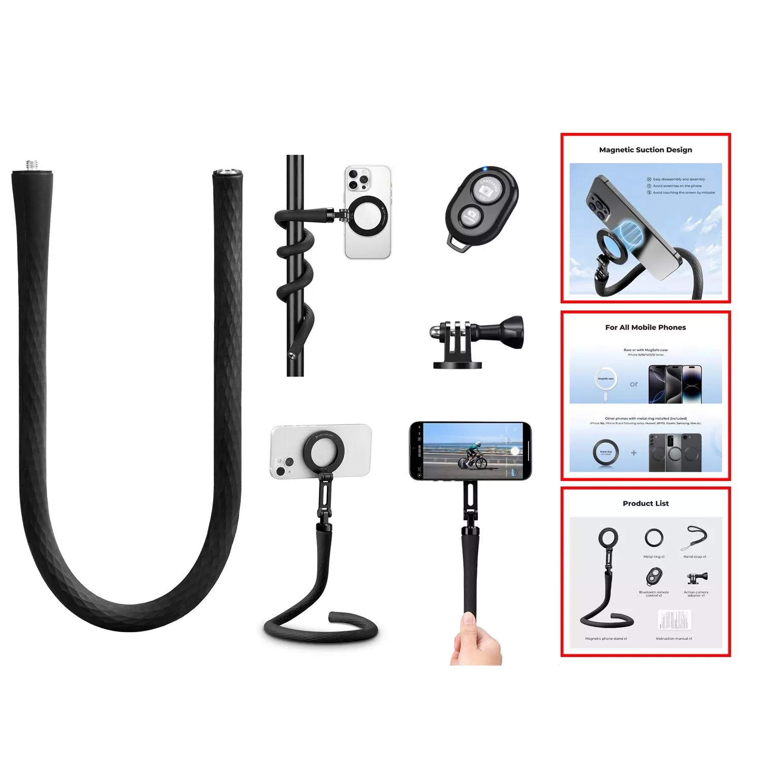 Upgrade your photography experience today with this flexible magnetic phone and GoPro holder. Bend it, rotate it, control it remotely, and capture your world in ways you never thought possible. Your creative potential is now unlimited—start shooting smarter, steadier, and more stylishly than ever before.
