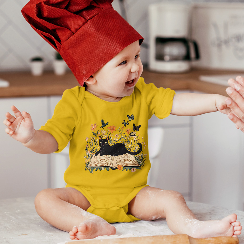Floral Cat Baby Onesie – Cat Book Baby Bodysuit – Cute Cat Baby One-Piece