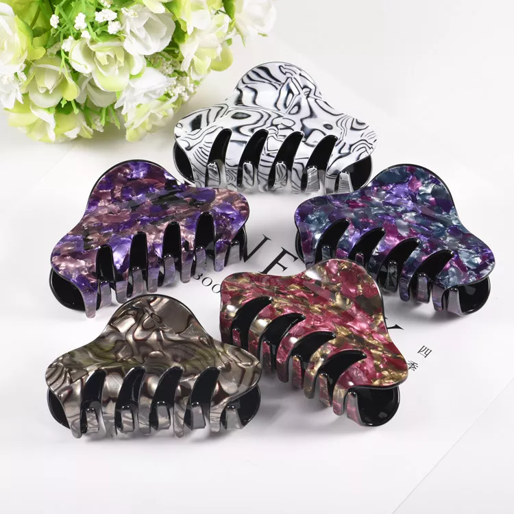 Made from eco-friendly acrylic, this hair claw is lightweight yet sturdy, ensuring your hairstyle stays perfectly in place without discomfort. The geometric floral pattern adds a subtle decorative touch, making it more than just a functional hair clip – it’s a statement piece that complements any outfit.