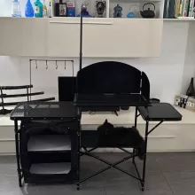 This folding camp kitchen has made outdoor cooking such an enjoyable experience! With multiple surfaces and compartments for storage, there’s plenty of room for all your essentials. The durable construction ensures longevity while its compact size makes transportation effortless.
