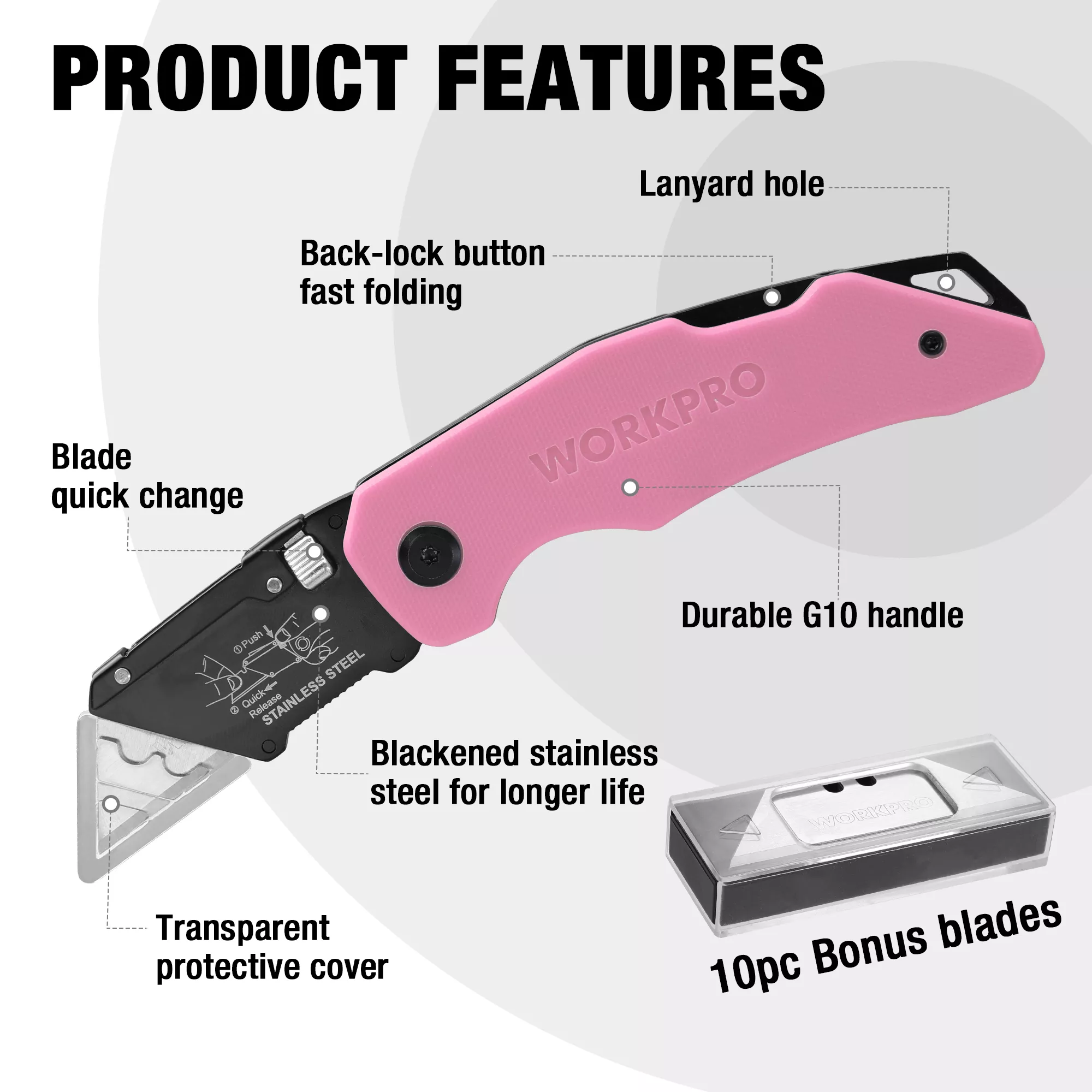 Unlike standard cutters, this folding utility knife combines practical design with high-performance materials. The G10 handle ensures a secure, non-slip grip even during extended use, while the back lock mechanism keeps the blade safely in place. Switching blades takes only seconds thanks to the quick-change system, so you can stay focused on the job without interruptions. Compact and foldable, it easily fits in your pocket or tool belt, making it an everyday essential for both home and work.