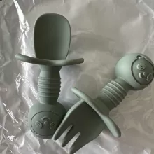 This silicone spoon and fork set has been a lifesaver for my little one's feeding journey. They're perfect for his tiny hands, lightweight yet sturdy enough to scoop up food without any struggle. The tongue pressing design is ingenious - it really helps him learn how to feed himself effectively. Plus, they're 100% food-grade silicone which means I don't have to worry about harmful chemicals like BPA. Cleaning them is also a breeze - just rinse or wipe clean! As a busy parent, this feature alone makes these utensils worth every penny.